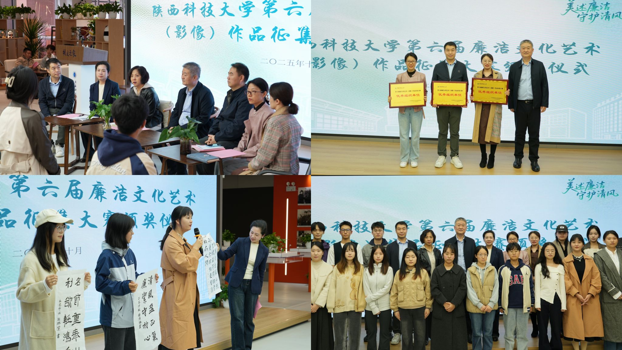 10月17日,陜西科技大學(xué)第六屆廉潔文化藝術(shù)作品征集大賽頒獎(jiǎng)儀式在校友之家舉行。紀(jì)委副書記王東、有關(guān)單位負(fù)責(zé)人及獲獎(jiǎng)師生代表共同參與。頒獎(jiǎng)儀式由設(shè)計(jì)與藝術(shù)學(xué)院黨委副書記、紀(jì)委書記田少寧主持。