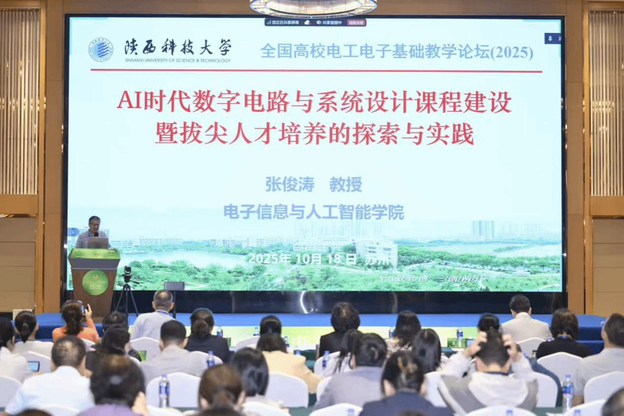 10月18至19日,第二屆全國高校電工電子基礎(chǔ)教學論壇在蘇州召開,電智學院張俊濤教授受邀以“AI時代數(shù)字電路與系統(tǒng)設(shè)計課程建設(shè)暨拔尖人才培養(yǎng)的探索與實踐”為主題做專題報告,報告受到與會教師的一致好評。