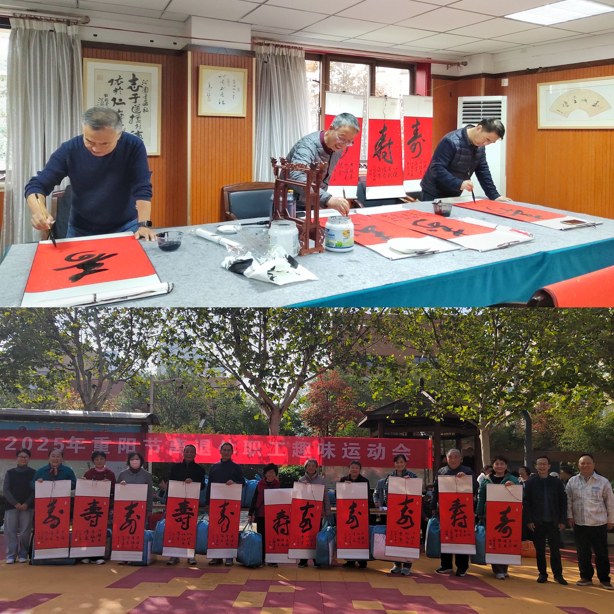 墨香傳情慶重陽,銀齡揮毫送安康。離退處組織書畫社老同志開展 “情暖重陽” 筆會活動,大家歡聚一堂、其樂融融,以筆墨寄情,共慶佳節(jié)。活動現(xiàn)場墨香陣陣,老同志們齊聚案前揮毫潑墨,將對中國傳統(tǒng)文化的深刻感悟與共度重陽的喜悅之情傾注筆尖。一幅幅氣勢磅礴的書法作品躍然紙上,“?!薄皦邸薄皦鄱怠?等寓意美好的筆墨,既展現(xiàn)了老同志們積極樂觀的心態(tài),更飽含著對美好生活的歌頌與贊美。此次筆會共創(chuàng)作 40 余幅優(yōu)秀書法作品,全部贈予校內(nèi) 70、80 周歲的老同志,不僅傳遞了老同志之間互助友愛的正能量,更讓中華民族孝親敬老的傳統(tǒng)美德在筆墨書香中代代相傳。