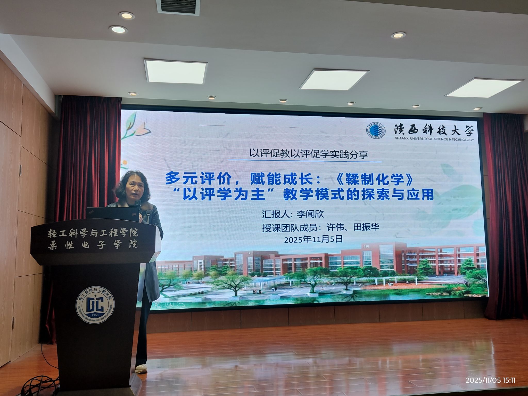 李聞欣以“多元評價,賦能成長:《鞣制化學(xué)》‘以評學(xué)為主’教學(xué)模式的探索與應(yīng)用”為主題,從課程背景、課程設(shè)計與實施、多元評價體系重構(gòu)以及實踐成效展示等四個方面向?qū)W院老師介紹了《鞣制化學(xué)》課程教學(xué)中“以評學(xué)為主”的教學(xué)模式。