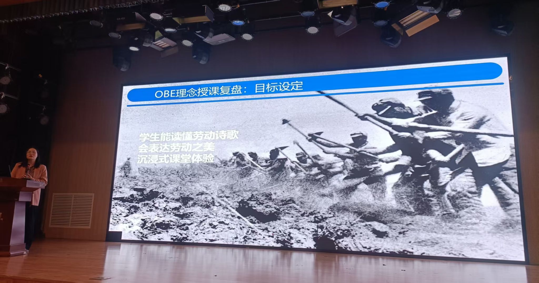 李靜以“抗戰(zhàn)時(shí)期的勞動(dòng)主題詩(shī)歌教學(xué)及其反思”為切入點(diǎn),從目標(biāo)設(shè)定、任務(wù)清單、OBE理念落地、授課復(fù)盤,詳細(xì)的分析了教師如何運(yùn)用理論聯(lián)系情景,運(yùn)用啟發(fā)教學(xué)法、問題教學(xué)法、項(xiàng)目教學(xué)法、案例教學(xué)法等等,來塑造和提升學(xué)生的能力表達(dá),使學(xué)生能夠沉浸式體驗(yàn)課程的魅力。