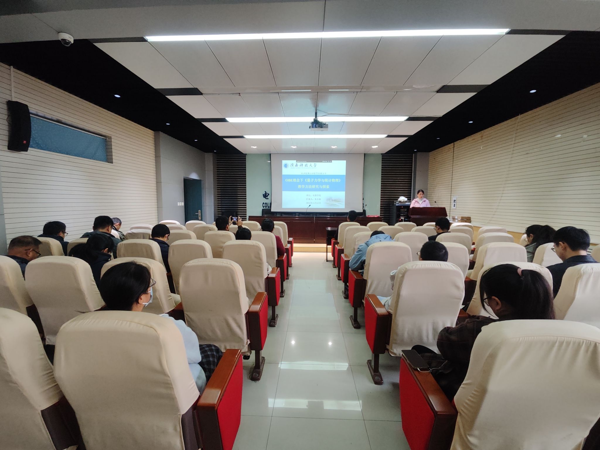 11月11日上午,電子信息與人工智能學(xué)院組織全院教師召開(kāi)“以評(píng)學(xué)為主”課程教學(xué)評(píng)價(jià)典型案例交流會(huì)。學(xué)院特別邀請(qǐng)校級(jí)該類典型案例獲獎(jiǎng)?wù)咧煨【昀蠋?,以《OBE 理念下,量子力學(xué)與統(tǒng)計(jì)物理課程教學(xué)方法研究與探索》為題進(jìn)行匯報(bào)分享。交流會(huì)由教學(xué)院長(zhǎng)任喜偉主持。