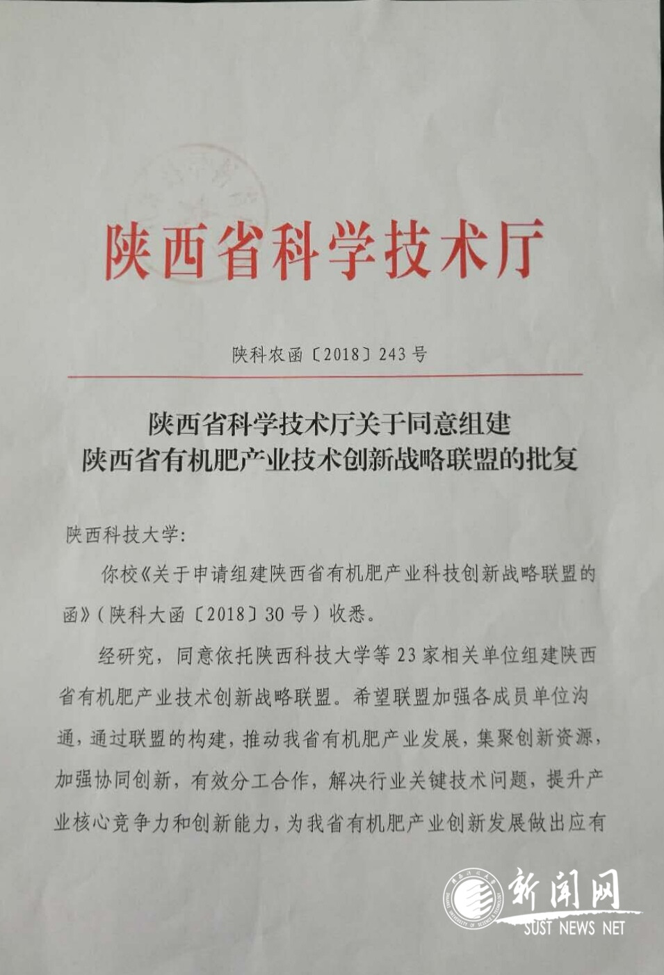 陜西省科技廳批準(zhǔn)將陜西省有機(jī)肥產(chǎn)業(yè)科技創(chuàng)新戰(zhàn)略聯(lián)盟設(shè)在我校,決定以陜西科技大學(xué)為理事長(zhǎng)單位,聘請(qǐng)化工學(xué)院李祥教授擔(dān)首屆創(chuàng)始任理事長(zhǎng),是對(duì)我??萍脊ぷ鞯目隙?。聯(lián)盟在以后的工作中,發(fā)揮理事長(zhǎng)單位的作用,加強(qiáng)聯(lián)盟各成員的溝通,發(fā)揮各自優(yōu)勢(shì),解決有機(jī)肥產(chǎn)業(yè)的關(guān)鍵技術(shù)研發(fā)和技術(shù)成果產(chǎn)業(yè)化問題,與國(guó)內(nèi)外單位加強(qiáng)聯(lián)系,提升有機(jī)肥產(chǎn)業(yè)核心競(jìng)爭(zhēng)力和創(chuàng)新能力,為我省有機(jī)肥產(chǎn)業(yè)的發(fā)展做出貢獻(xiàn)。