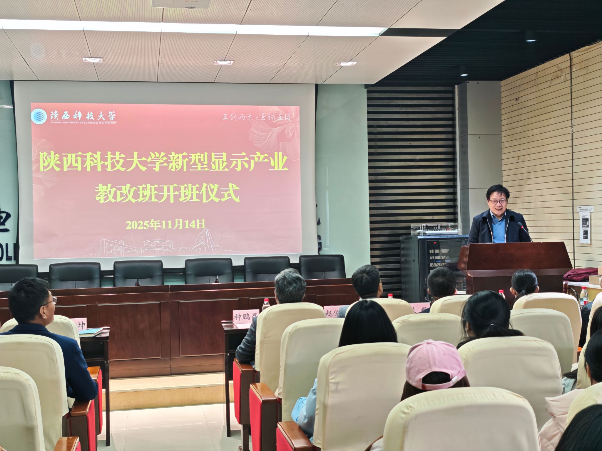 為精準(zhǔn)對接新型顯示產(chǎn)業(yè)高質(zhì)量發(fā)展需求,創(chuàng)新復(fù)合型技術(shù)人才培養(yǎng)模式,11月14日,電智學(xué)院新型顯示教改班開班儀式在2A實(shí)驗(yàn)樓206會議室隆重舉行。電智學(xué)院院長馬令坤、黨委副書記嚴(yán)渭青、電子系主任張方暉、虹陽顯示(咸陽)科技有限公司副總經(jīng)理種鵬昆等7家企業(yè)代表和師生代表參加了會議,會議由院長助理任喜偉主持。