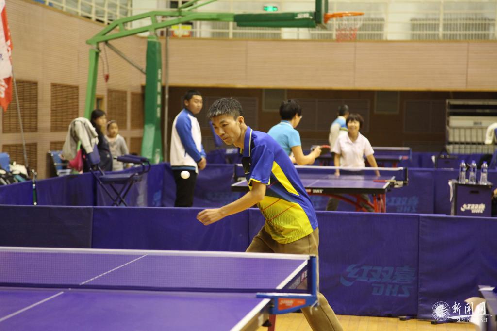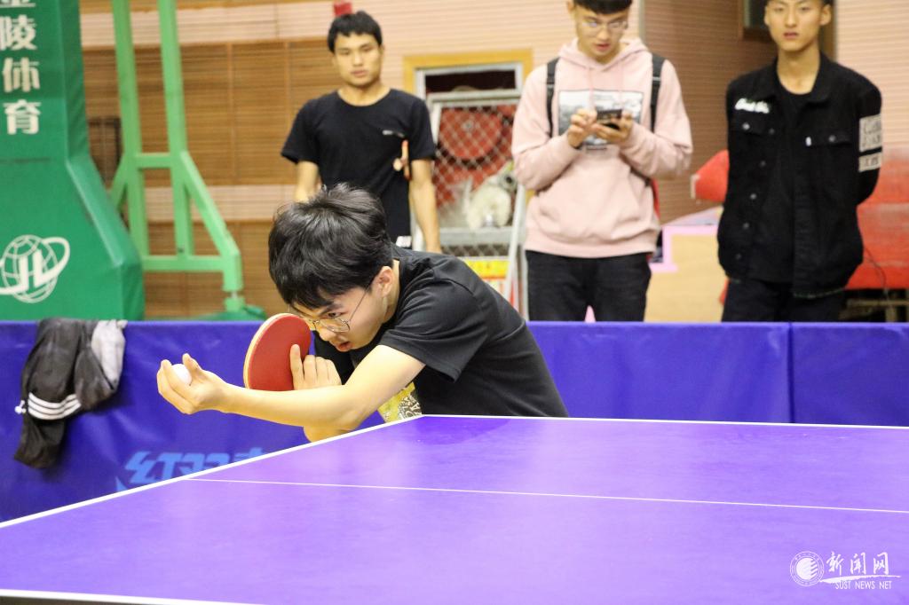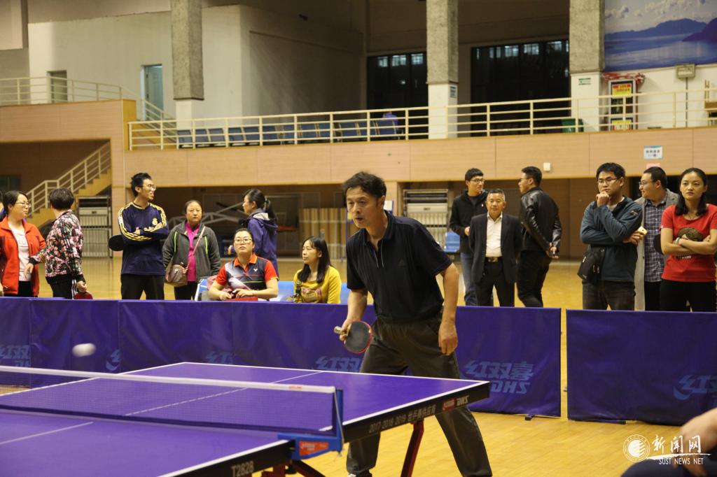 教工男子團隊比賽最吸人眼球,遠遠地就能聽見觀眾們的喝彩聲,文理學院吳云天老師每年都參賽,屬于中年組“健將級”選手,只見他拿出專業(yè)水平,每打一球,就會在臺上搓一下手,拍一下球臺,防止手汗影響發(fā)揮。