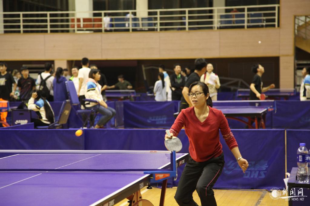 晚7:00,哨聲一起,比賽正式開始,只見整個比賽場上白色的球左攻右擊。比賽以單打的形式展開,在眾多水平不相上下的參賽運動員之間進行,比賽也因運動員的拼搏變的更加精彩:直拍、橫拍、扣球、旋轉(zhuǎn)球、弧線球,小小的乒乓球在臺面上銳不可當,比賽中不時傳出熱烈的喝彩聲與興奮的“好球”聲。