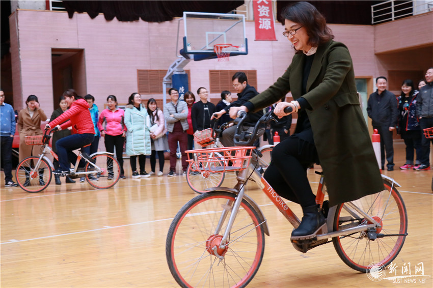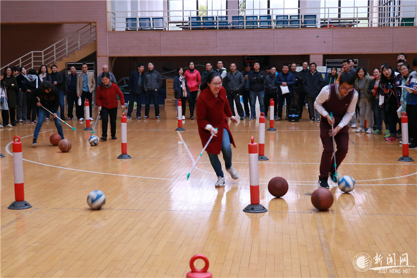 首先開始的是個(gè)人項(xiàng)目,在乒乓球定點(diǎn)投擲比賽中,教研室老師運(yùn)用專業(yè)力學(xué)知識(shí)反復(fù)試驗(yàn),充分考慮空氣中的微風(fēng)、投擲力道的大小、投擲角度的高低,比賽異彩紛呈,賽場(chǎng)上出現(xiàn)了各種弧線,儼然成了力學(xué)知識(shí)大比拼;在自行車漫步和趕“豬”跑項(xiàng)目中,一個(gè)要求速度最慢,一個(gè)要求速度最快,老師們奇思妙想,賽場(chǎng)上各類狀況層出不窮,笑聲、掌聲、吶喊聲不絕于耳。
