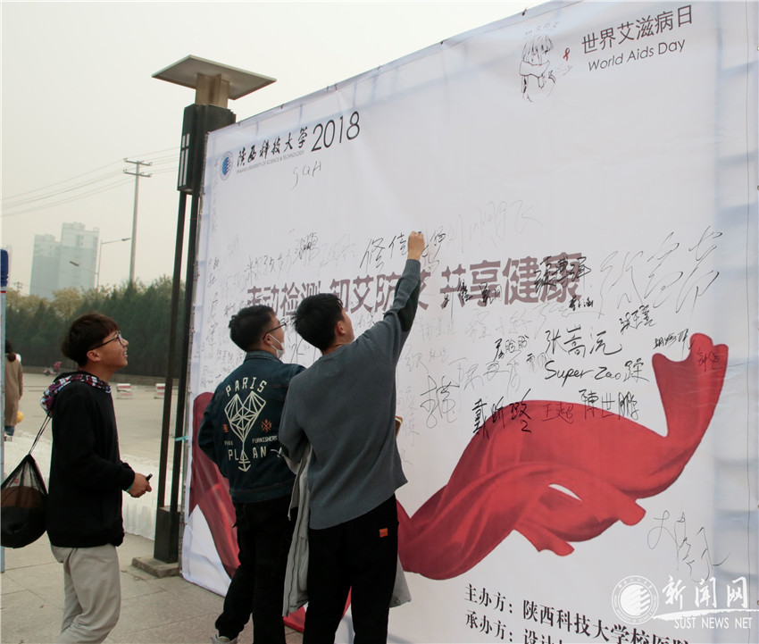 活動(dòng)現(xiàn)場,校醫(yī)院圍繞活動(dòng)主題,通過志愿簽名活動(dòng)、懸掛橫幅、散發(fā)宣傳冊及發(fā)放印有防艾宣傳警句和防艾知識的小禮品、提供咨詢等形式開展服務(wù)和宣傳工作,醫(yī)務(wù)人員向?qū)W生發(fā)放宣傳資料,耐心講解,讓更多人認(rèn)識、了解艾滋病,預(yù)防和減少艾滋病的危害,提醒師生珍視生命,遠(yuǎn)離艾滋。大學(xué)生們以“我是艾滋病日形象宣傳大使”為主題百人同跳《生命之舞》,詮釋了我校大學(xué)生勇于承擔(dān)防治責(zé)任,積極參與艾滋病防治工作,同心攜手,加強(qiáng)合作,共同防治艾滋病,為實(shí)現(xiàn)健康中國夢努力奮斗。