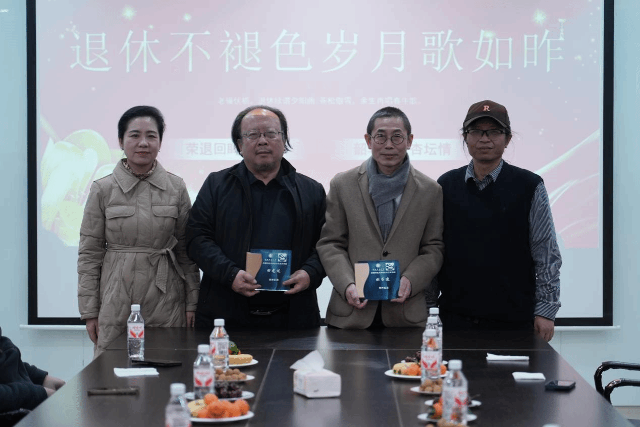 儀式現(xiàn)場,田少寧、副院長米高峰共同為兩位教授創(chuàng)作藏頭賀詩,致敬其數(shù)十年躬耕教壇,堅守育人初心;學(xué)院為兩位教授贈送紀(jì)念品,教師代表與學(xué)生代表分別獻(xiàn)上鮮花,滿滿敬意與美好祝福傳遞其間。全體參會人員與兩位教授合影留念,用鏡頭定格這一溫馨時刻。