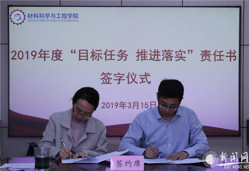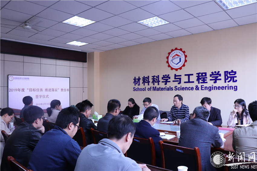 為進一步把學院2019年度各項重點任務(wù)落實到團隊、落實到個人,近日,材料科學與工程學院舉行 “目標任務(wù)推進落實”責任書簽字儀式。學院班子成員,各系(室)主任、副主任,教工黨支部書記,各科研團隊負責人(團長)參加,儀式由學院黨委副書記楊長安主持。