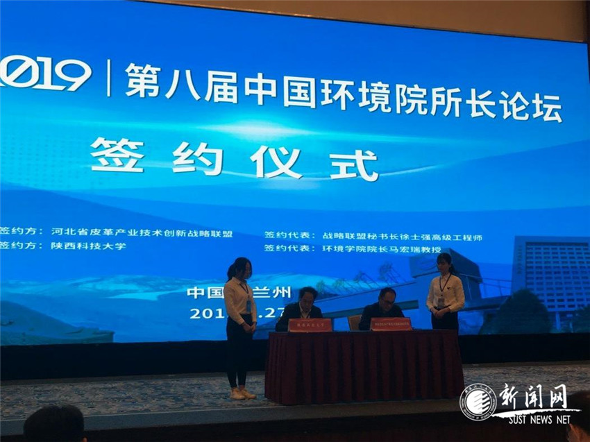 論壇舉行了環(huán)保領(lǐng)域合作簽約儀式。馬宏瑞教授作為國(guó)內(nèi)高校代表在現(xiàn)場(chǎng)與河北辛集經(jīng)濟(jì)開(kāi)發(fā)區(qū)制革產(chǎn)業(yè)聯(lián)盟舉行簽約儀式,并做主題發(fā)言,向與會(huì)專(zhuān)家學(xué)者介紹了我校環(huán)境學(xué)科的發(fā)展、“一流本科建設(shè)”、環(huán)保類(lèi)人才培養(yǎng)模式探索等內(nèi)容。