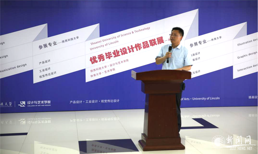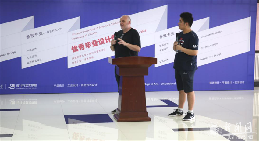 Dave Bramston首先感謝設(shè)藝學(xué)院提供本次藝術(shù)交流的機會。他表示,這是他第一次到訪陜西科技大學(xué),對我校學(xué)生的作品非常感興趣,希望能達到深度交流。本次中英大學(xué)生藝術(shù)作品展開啟了雙方藝術(shù)交流的新篇章。林肯大學(xué)學(xué)生的作品體現(xiàn)了英國本土的文化特色,希望雙方學(xué)生通過本次交流,迸發(fā)出新的藝術(shù)火花。