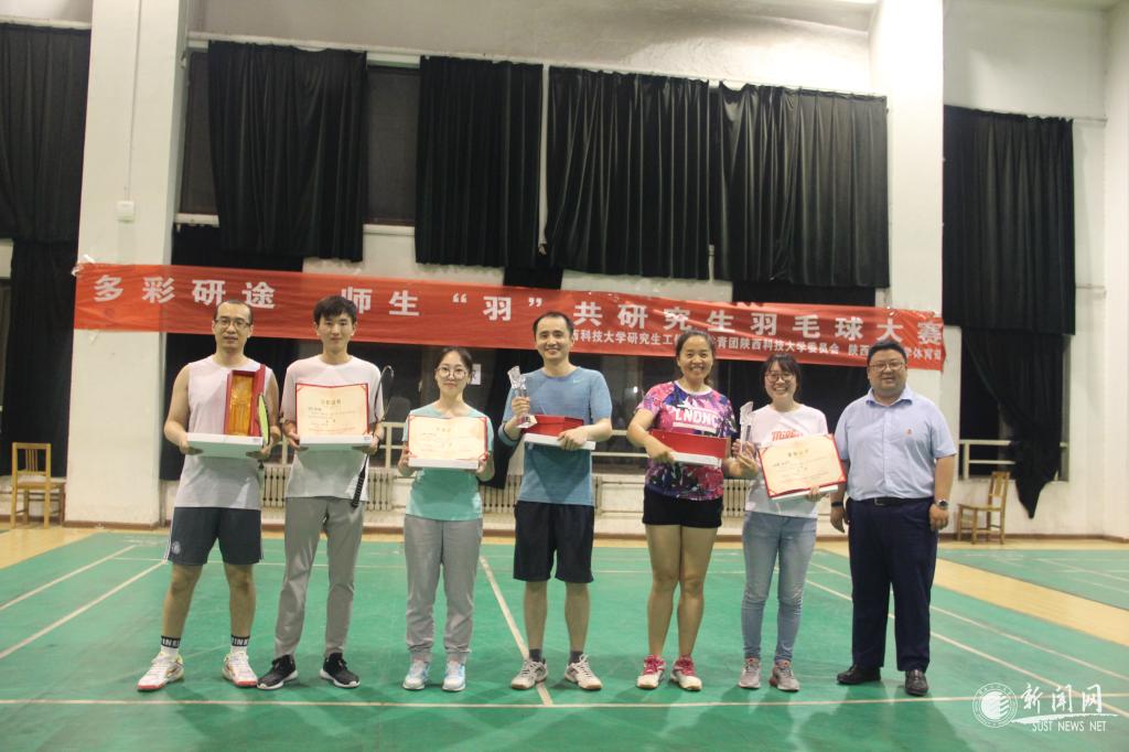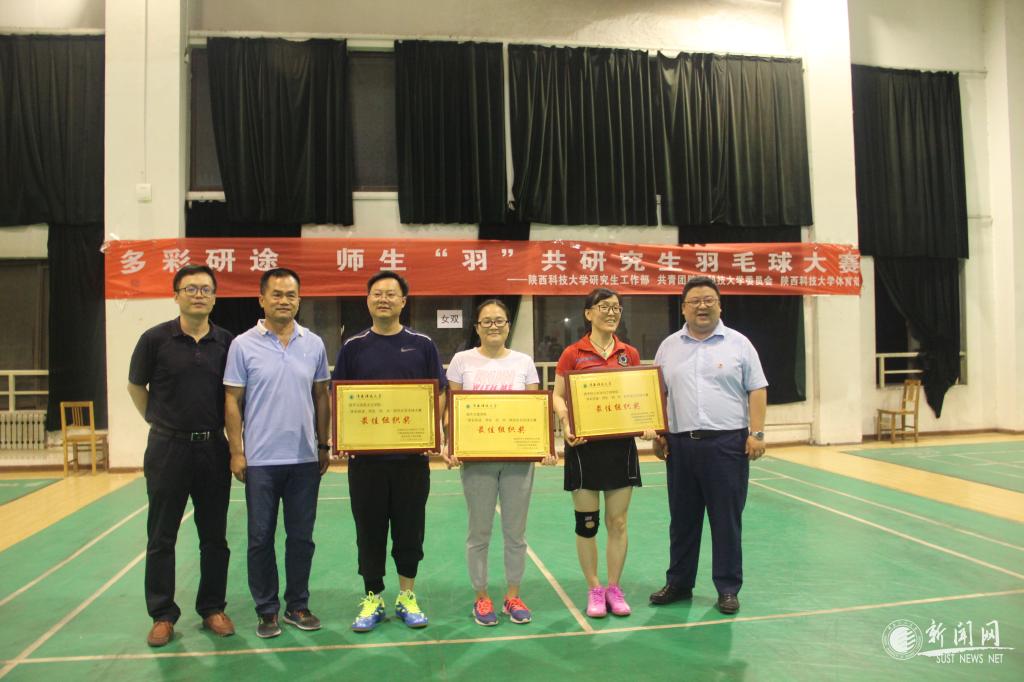 為加強(qiáng)我校研究生思想政治教育工作,全面落實(shí)研究生導(dǎo)師立德樹(shù)人職責(zé),推動(dòng)導(dǎo)學(xué)關(guān)系建設(shè),豐富師生的科研生活,展現(xiàn)我校師生良好的精神風(fēng)貌和昂揚(yáng)的斗志活力,近日由研究生院(研工部)、校團(tuán)委、校體育部共同主辦,校研究生會(huì)協(xié)辦的2019年“多彩研途·師生‘羽’共”研究生師生羽毛球賽成功舉辦。校體育部副主任徐廣華、校團(tuán)委書(shū)記李鵬、研究生院(研工部)副部長(zhǎng)陳李斌出席決賽并為獲獎(jiǎng)隊(duì)伍頒獎(jiǎng)。