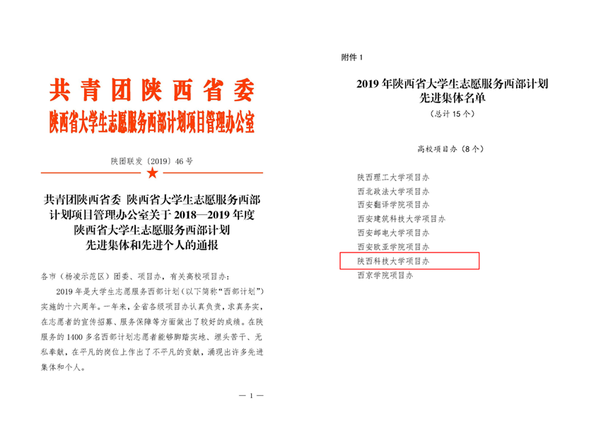 儀式上,我校獲評陜西省大學生志愿服務(wù)西部計劃2018—2019年度先進集體稱號。