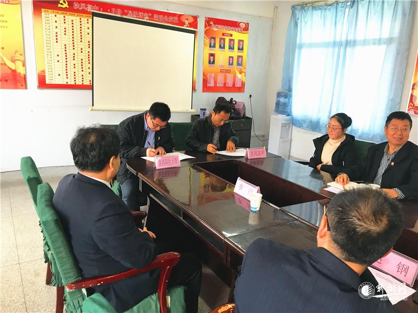 招生工作辦公室副主任王寧與扶風(fēng)高中校長(zhǎng)張建軍簽署《陜西科技大學(xué)優(yōu)秀生源基地建設(shè)協(xié)議》