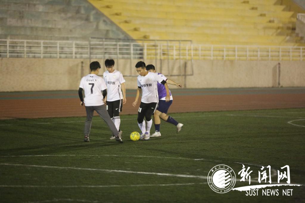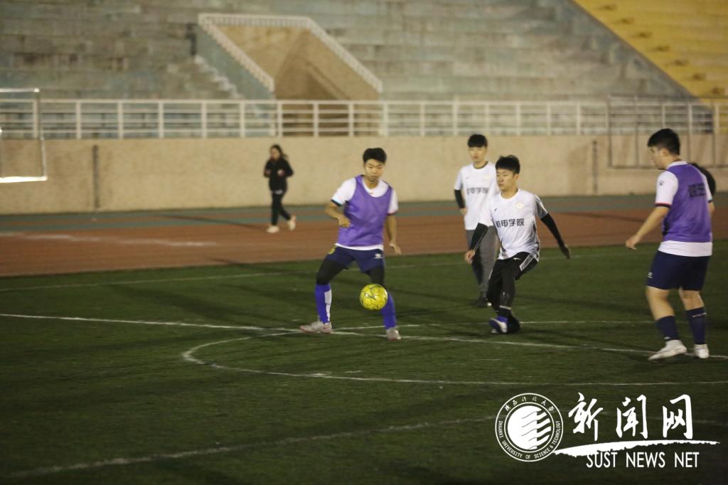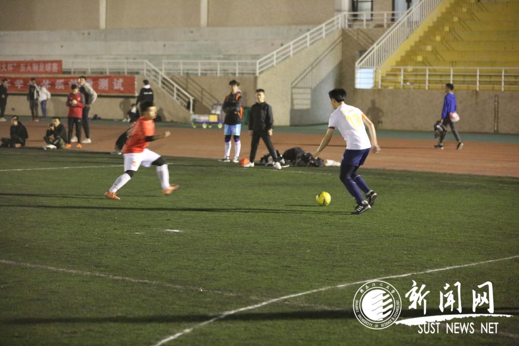 10月28日晚7:00,我校第三屆“科大杯”五人制足球賽拉開帷幕。 在諾大的足球場上,東邊是機(jī)電1VS設(shè)藝2,西邊則是設(shè)藝1對陣足協(xié)2。 西面操場首先拉開帷幕,雙方起初打的風(fēng)平浪靜,但隨著隊員們漸入狀態(tài),設(shè)藝與足協(xié)球員們開始了火熱的競賽。把圍觀人員的心情搞得起伏不定,尤其是雙方的守門員。他們站在最佳視角,俯瞰全場,總是扯著大嗓門,給雙方隊友加油鼓勁,提醒隊友進(jìn)行攻防。