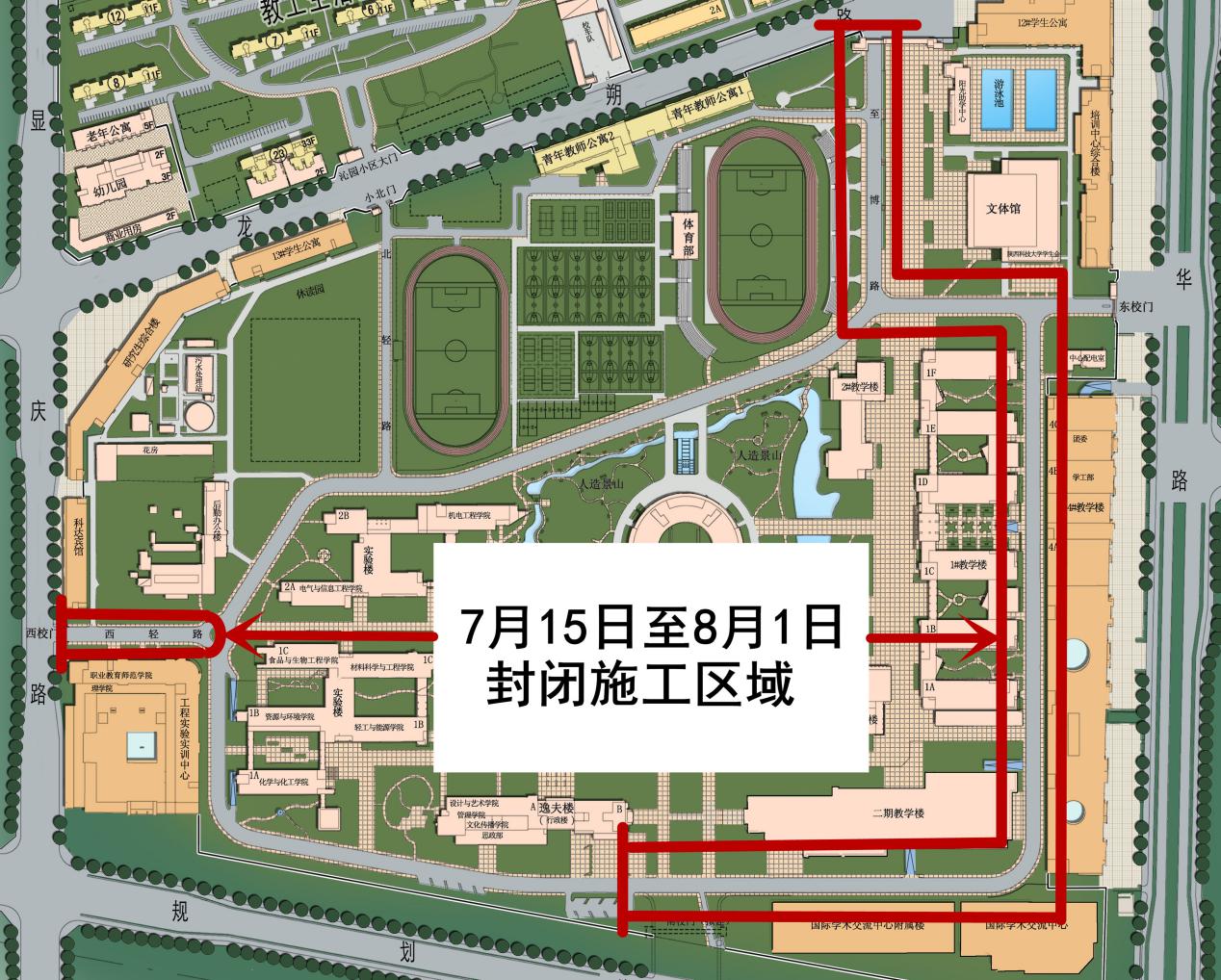 后續(xù)施工需封閉區(qū)域我們會及時另行通知。由此給廣大師生帶來不便敬請諒解。