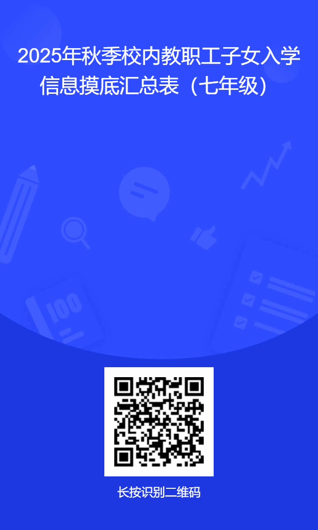 1.《2025年秋季校內(nèi)教職工子女入學(xué)信息摸底登記匯總表(一年級(jí)/七年級(jí))》二維碼