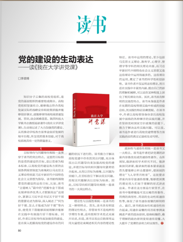 當(dāng)代陜西:黨的建設(shè)的生動(dòng)表達(dá)——專家學(xué)者評(píng)我校黨委書記姚書志專著《我在大學(xué)講黨課》