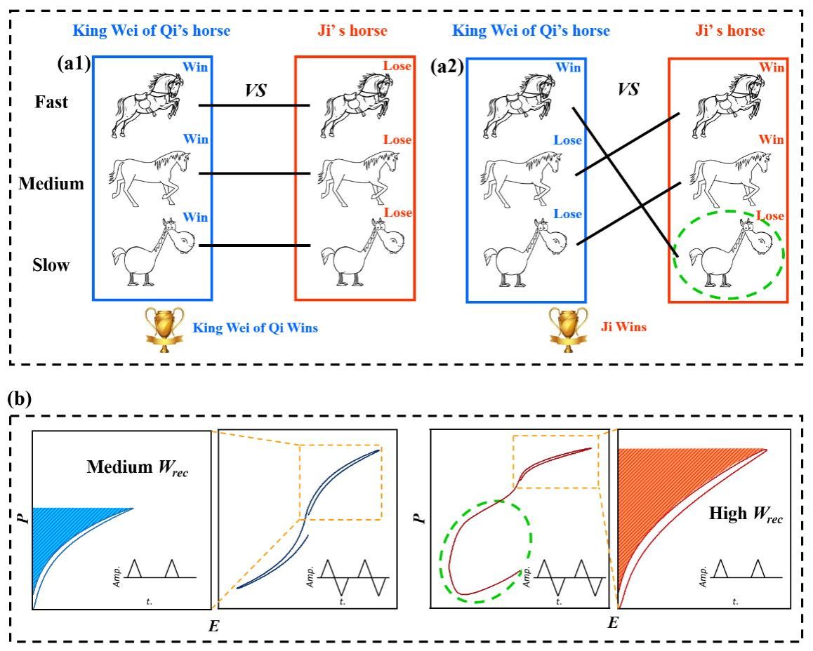 圖1 受“田忌賽馬”典故啟發(fā),以犧牲電滯回線負(fù)向鐵電性為代價(jià)來提升其正向儲(chǔ)能密度