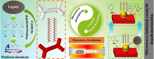 王文亮副教授等提出了一種微波響應(yīng)型催化劑,并成功用于克量級(jí)木質(zhì)素解聚蒸氣的微波輔助催化重整,為從資源豐富的木質(zhì)素中規(guī)?;@取關(guān)鍵的酚類和芳香烴類平臺(tái)化合物提供了行之有效的途徑。該研究發(fā)表于國際頂級(jí)期刊Applied Catalysis B: Environmental和Chemical Engineering Journal。