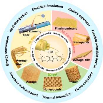 圖1 PBO納米纖維的特性、多維度材料構筑及應用