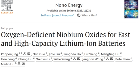 文章信息: Panpan Jing*, Nan Guo, Jiale Liu, Sunghao Ho, Lu Zheng, Mengting Liu, Hao Fang, Chang Liu, Wenwu Li, Sizhe Wang, Jenghan Wang*, Bote Zhao, Meilin Liu*, Nano Energy, 2025, DOI: 10.1016/j.nanoen.2025.111236