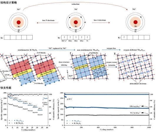加速高功率快充鋰離子電池及其關(guān)鍵材料的研制對(duì)我國發(fā)展下一代民用和特殊領(lǐng)域用電動(dòng)設(shè)備具有重要意義。具有晶體學(xué)剪切結(jié)構(gòu)的鈮氧化物因其在高能量密度、高功率鋰離子電池中的應(yīng)用潛力備受關(guān)注。然而,如何調(diào)控材料本征結(jié)構(gòu)以獲得兼具更高電子/離子電導(dǎo)率的新相,是實(shí)現(xiàn)高性能電化學(xué)儲(chǔ)鋰的重大挑戰(zhàn)。
