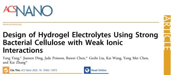 近期,我校輕工科學(xué)與工程學(xué)院(柔性電子學(xué)院)陳詠梅教授團(tuán)隊(duì)楊洋副教授課題組聚焦生物質(zhì)資源高值化利用,在生物質(zhì)基凝膠電解質(zhì)領(lǐng)域取得重要進(jìn)展,相關(guān)成果在ACS Energy Letters、ACS Nano上發(fā)表。