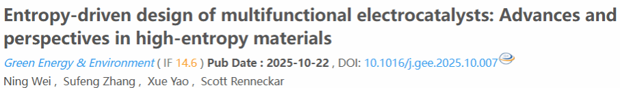 本團(tuán)隊(duì)系統(tǒng)闡述了高熵材料在電催化領(lǐng)域的最新進(jìn)展與未來前景。高熵材料憑借其多組分協(xié)同、高熵效應(yīng)和結(jié)構(gòu)可調(diào)等優(yōu)勢,正成為推動氫能制備、二氧化碳轉(zhuǎn)化、燃料電池等綠色能源技術(shù)發(fā)展的關(guān)鍵材料。本論文全面梳理了HEMS的分類、結(jié)構(gòu)構(gòu)建和調(diào)節(jié)策略,重點(diǎn)介紹了HEMS在電解水(HER、OER)、氫氧化(HOR)、氧還原(ORR)、二氧化碳還原(CO2RR)、硝酸鹽還原(NO3-RR)和有機(jī)物電氧化(EOO)等關(guān)鍵電催化反應(yīng)中的研究進(jìn)展。此外,還分析了HEMS的制備方法、催化過程中的結(jié)構(gòu)與性能關(guān)系以及熵調(diào)節(jié)機(jī)制。最后,本文提出了HEMS目前在電催化應(yīng)用方面面臨的關(guān)鍵挑戰(zhàn),并展望了其未來的發(fā)展方向,為構(gòu)建新一代高效、可持續(xù)的電催化劑提供理論基礎(chǔ)和設(shè)計思路。相關(guān)研究成果以 “Entropy-Driven Design of Multifunctional Electrocatalysts: Advances and Perspectives in High-Entropy Materials” 為題發(fā)表在國際期刊Green Energy & Environment (文章鏈接:https://doi.org/10.1016/j.gee.2025.10.007 )