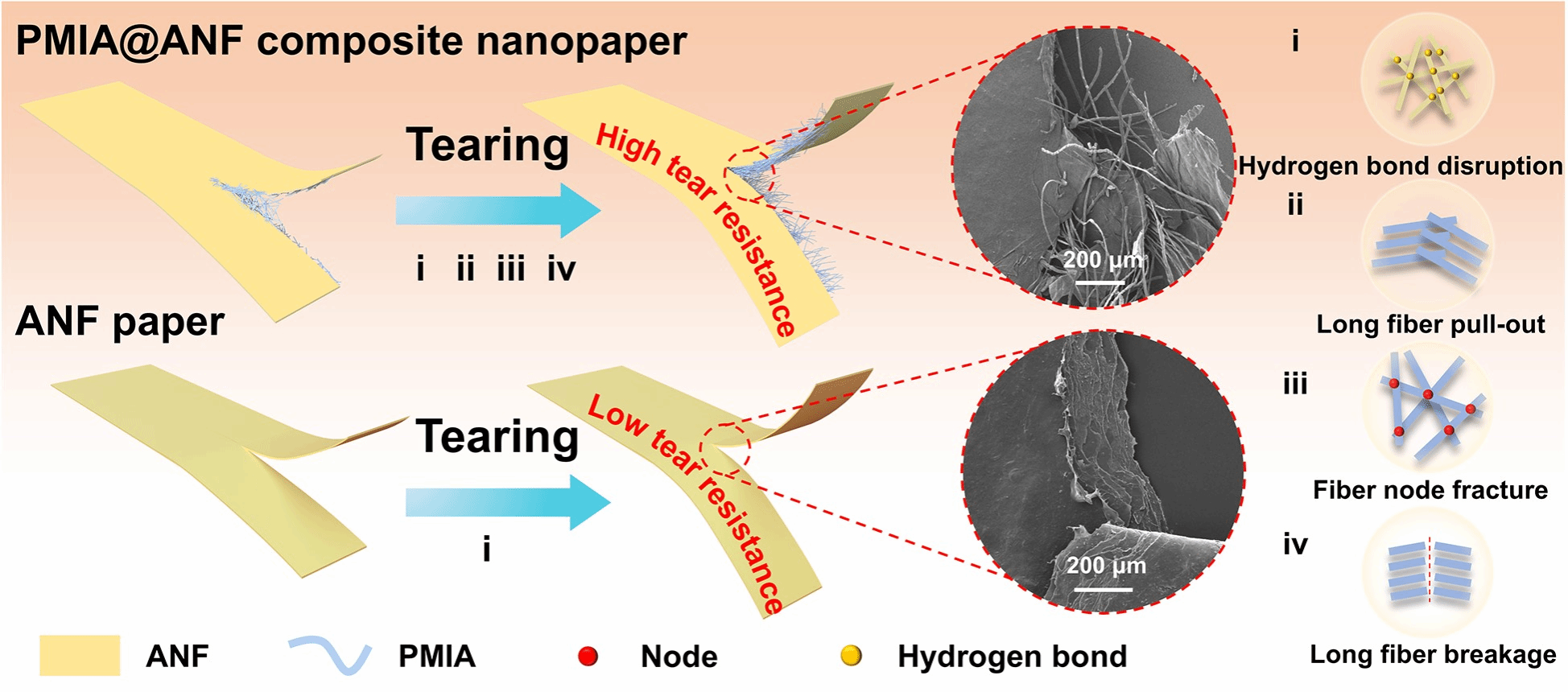 電氣絕緣材料是確保電氣系統(tǒng)運行安全和能源效率優(yōu)化的基石,廣泛應(yīng)用于超高壓變壓器和驅(qū)動電機等關(guān)鍵領(lǐng)域。當前,紙基絕緣材料因其輕質(zhì)、高介電強度和可設(shè)計性而備受關(guān)注,但傳統(tǒng)聚間苯二甲酰間苯二甲胺(PMIA)絕緣紙存在結(jié)構(gòu)疏松、機械性能差和介電強度低的問題,而芳綸納米纖維(ANF)紙雖具有優(yōu)異的拉伸強度和介電性能,卻因纖維節(jié)點固定、難以通過滑移耗散能量,導致撕裂強度極低,易發(fā)生脆性斷裂,嚴重限制其在高電壓和極端環(huán)境下的應(yīng)用。