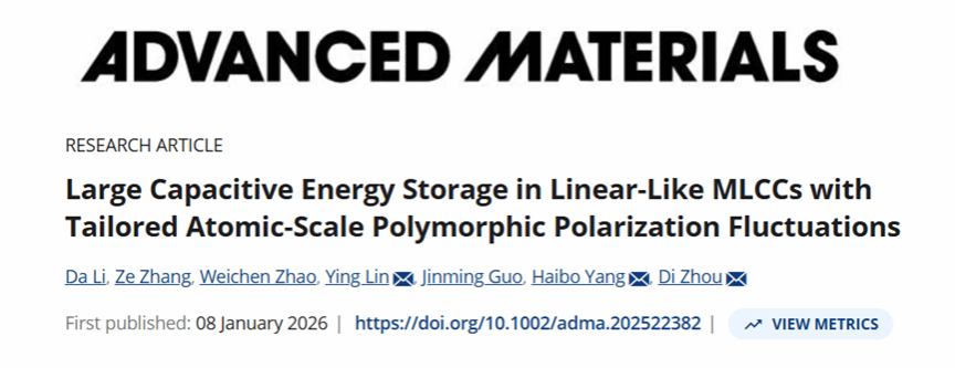 近日,材料科學與工程學院楊海波教授團隊在國際頂級期刊《Advanced Materials》(IF:26.8)上發(fā)表了題為“Large Capacitive Energy Storage in Linear-Like MLCCs with Tailored Atomic-Scale Polymorphic Polarization Fluctuations”的研究論文。陜西科技大學材料學院楊海波教授、林營教授和西安交通大學電子學院周迪教授為文章共同通訊作者,陜西科技大學材料學院博士后李達為第一作者,陜西科技大學為第一通訊單位。
