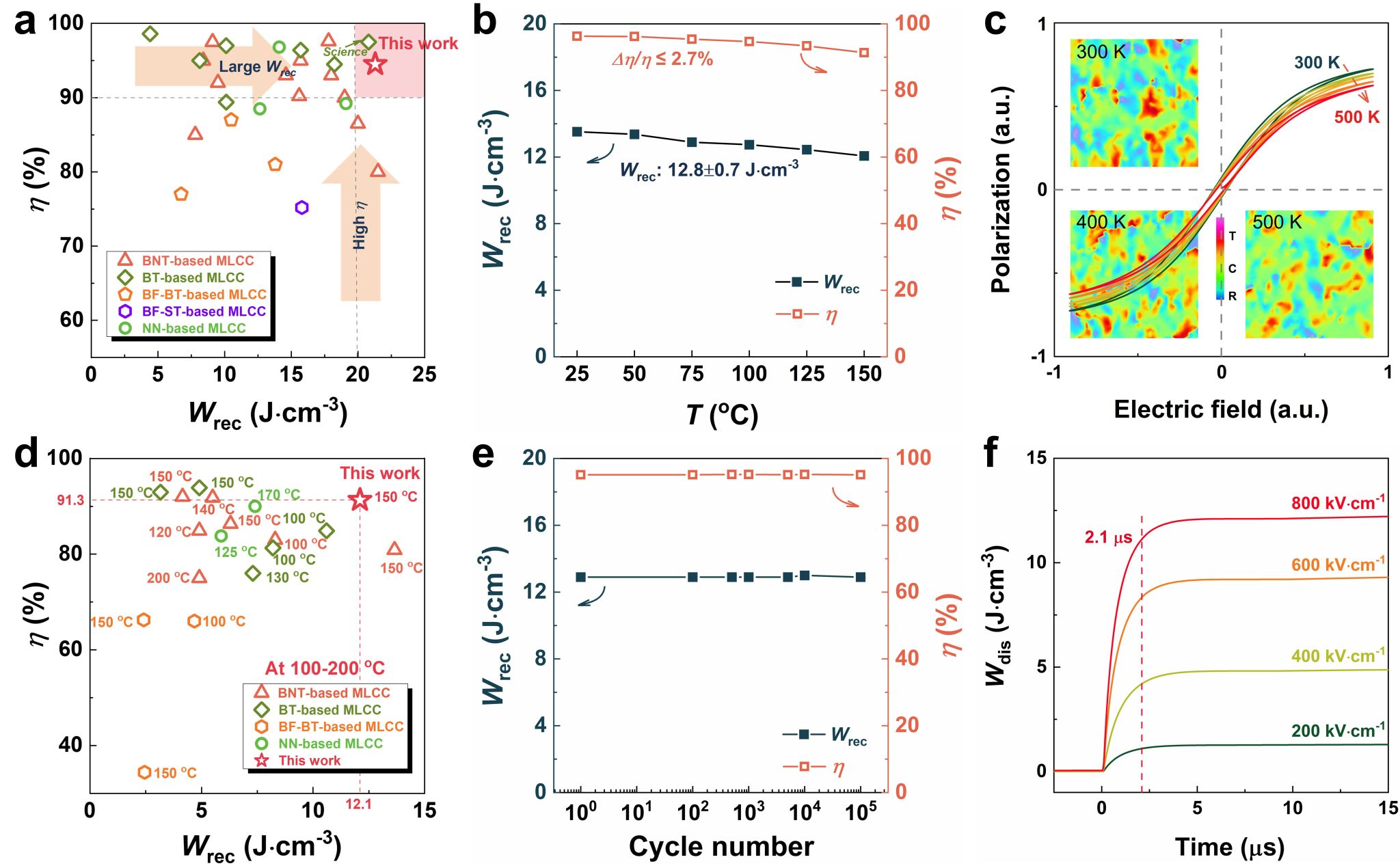 圖2 0R-MLCCs在不同條件下的綜合儲能優(yōu)勢及穩(wěn)定性