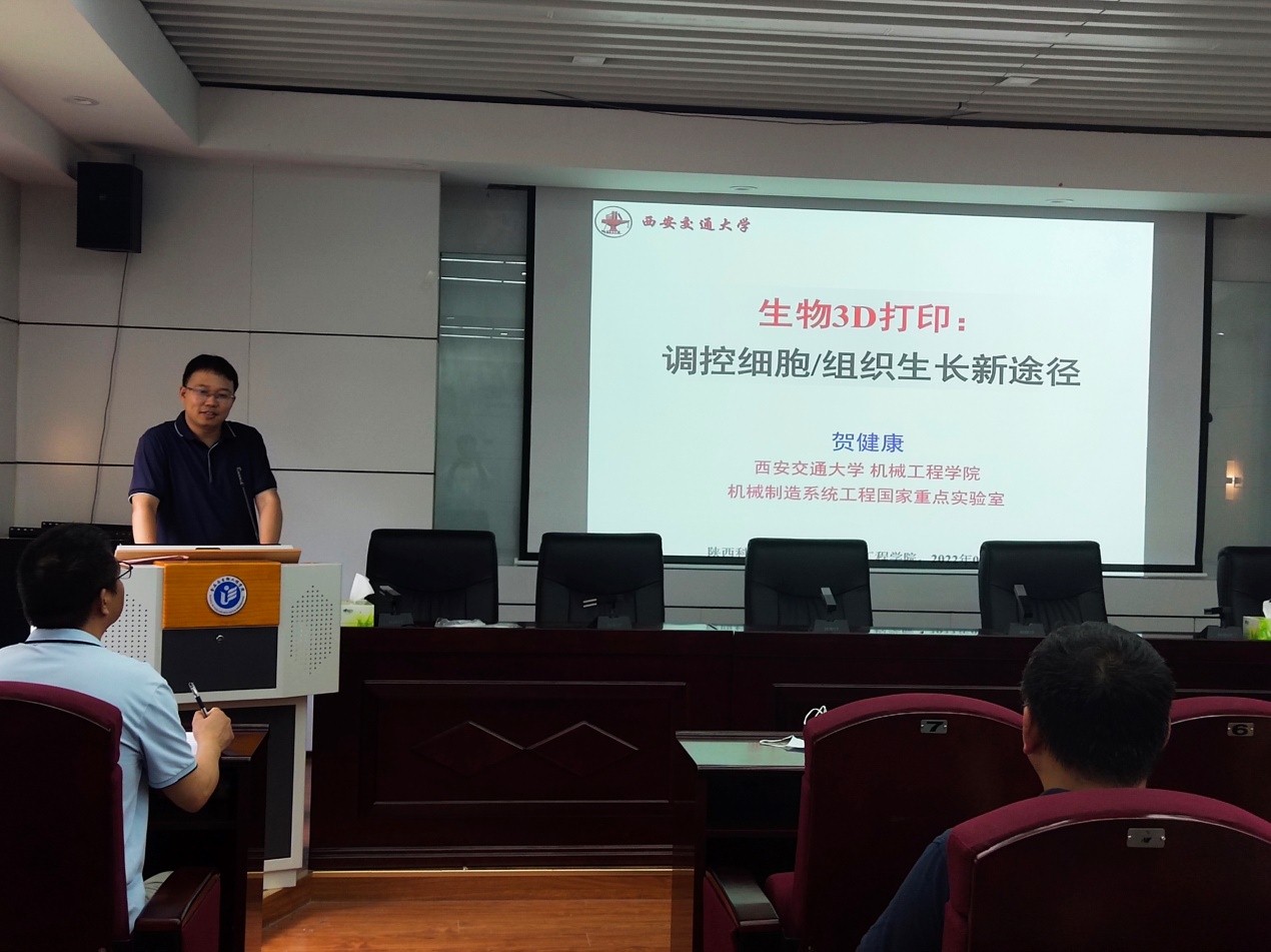 7月5日下午,西安交通大學機械工程學院教授賀健康應邀做客我?!?span style="text-indent: 28px;">前沿科學報告”,以“生物3D打?。赫{(diào)控細胞/組織生長新途徑”為題進行學術報告,報告在食品與生物工程學院學術報告廳進行,食品學院部分教師和研究生代表參加了本次報告會,報告由食品學院院長助理高翔主持。