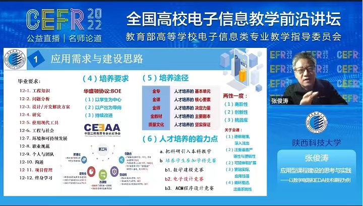 全國高校電子信息教學(xué)前沿講壇是教育部高等學(xué)校電子信息專業(yè)教學(xué)指導(dǎo)委員會(huì)主辦的,以“分享優(yōu)秀教育成果”和“傳播優(yōu)秀教育理念”為宗旨的公益直播活動(dòng)。自2022年7月開播以來,已有來自全國高校的13位資深教師做了直播報(bào)告,交流教學(xué)方法和課程建設(shè)經(jīng)驗(yàn)。張俊濤教授的直播報(bào)告共吸引1648人觀看。
