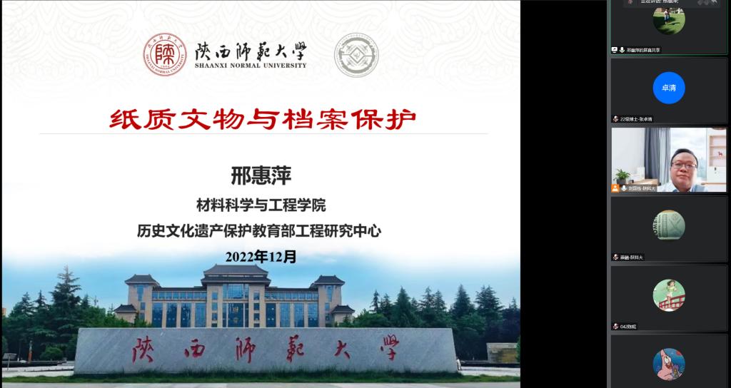 應(yīng)輕工科學(xué)與工程學(xué)院和研究生院邀請(qǐng),陜西省產(chǎn)品質(zhì)量監(jiān)督檢驗(yàn)研究院建材輕工所副所長王思宇、陜西師范大學(xué)副教授邢惠萍分別于12月10日、12月9日做客我校“未央導(dǎo)師論壇”,分別作了題為“食品包裝材料質(zhì)量安全檢測(cè)技術(shù)”“紙質(zhì)文物與檔案保護(hù)”的線上學(xué)術(shù)報(bào)告。學(xué)院相關(guān)專業(yè)教師、研究生及本科生參加了報(bào)告會(huì)。