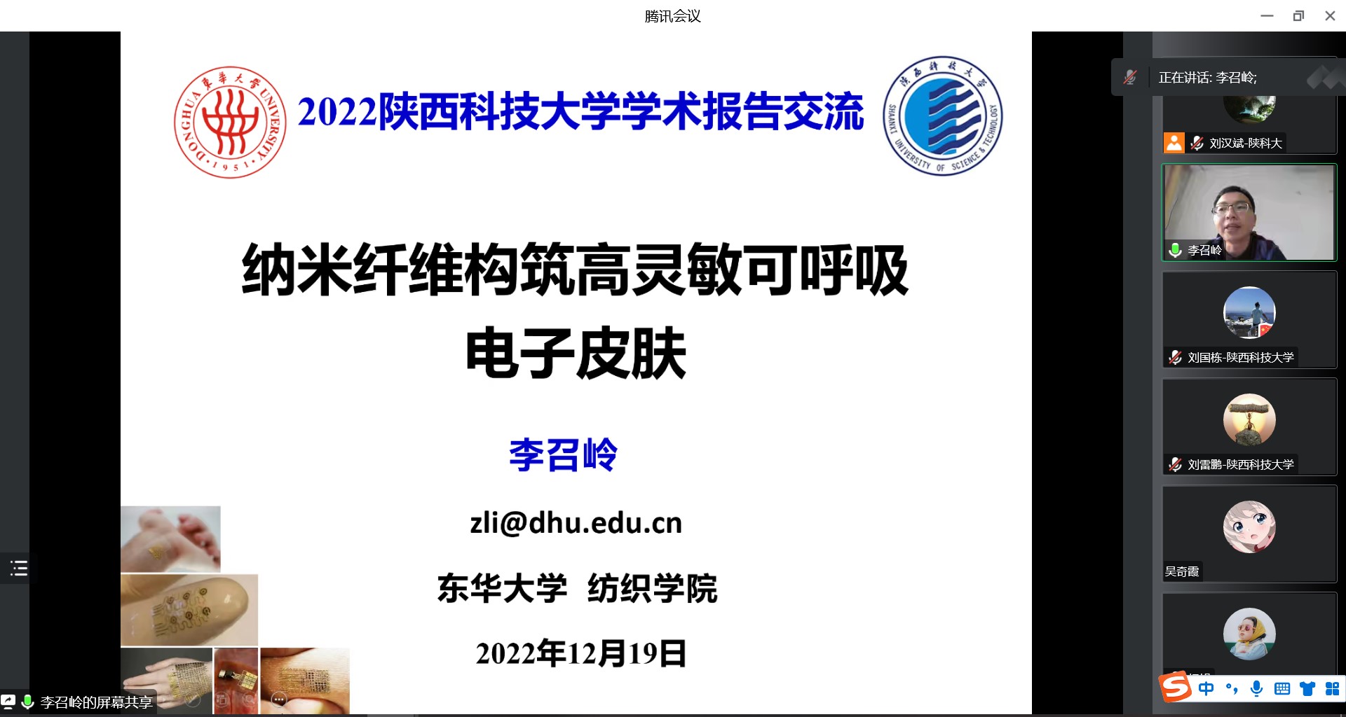 近日,應我校輕工科學與工程學院(柔性電子學院)、科技處及前沿院邀請,哈爾濱工業(yè)大學李垚教授、東華大學李召嶺研究員做客我校“前沿科學報告”,作了題為“領略材料的藝術——調光控熱”“納米纖維構筑高靈敏可呼吸電子皮膚”的線上學術報告。報告由輕工學院副院長劉國棟主持,學院相關專業(yè)教師、研究生及本科生參加報告會。