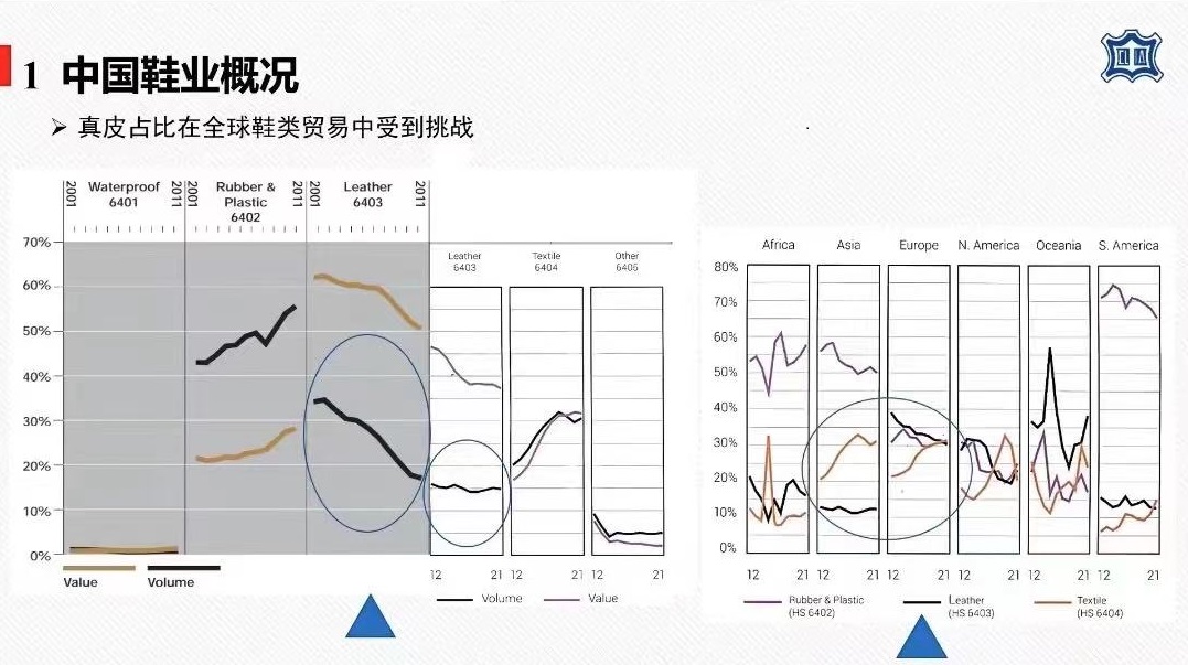 路華副秘書主要圍繞“我國鞋業(yè)概況”這一主題,從我國鞋業(yè)的全球坐標(biāo)、真皮占比在全球鞋類貿(mào)易中受到挑戰(zhàn)、我國鞋產(chǎn)品的內(nèi)銷和出口市場分析以及我國鞋業(yè)的生產(chǎn)狀況等方面,詳細(xì)介紹了我國鞋業(yè)以及皮革等鞋用材料的發(fā)展現(xiàn)狀,最后對(duì)我國鞋業(yè)及鞋材的升級(jí)轉(zhuǎn)型發(fā)展方向進(jìn)行了展望。