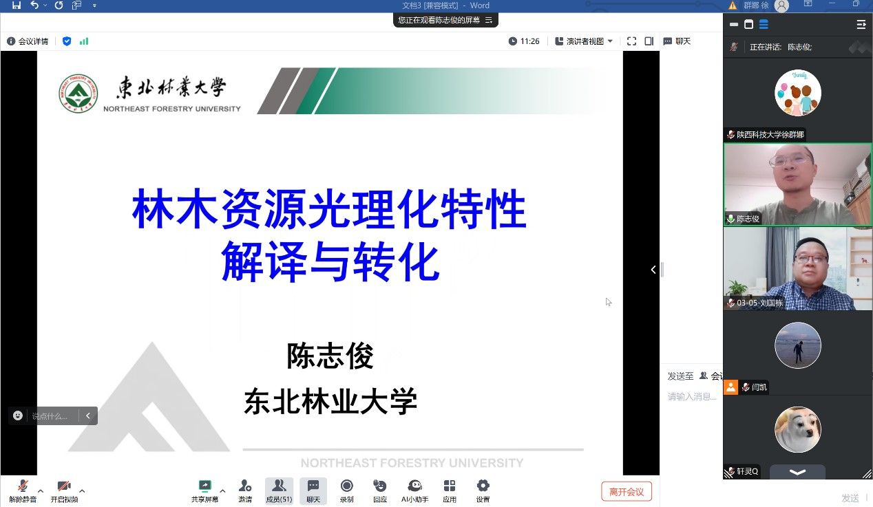 12月27日,受我校輕工科學(xué)與工程學(xué)院(柔性電子學(xué)院)、科技處及前沿院邀請,東北林業(yè)大學(xué)陳志俊教授做客我?!扒把乜茖W(xué)報告”,做了題為“林木資源光理化特性解譯與轉(zhuǎn)化”的線上學(xué)術(shù)報告。報告由輕工學(xué)院副院長劉國棟主持,輕工學(xué)院部分教師及學(xué)生聆聽了本次報告。