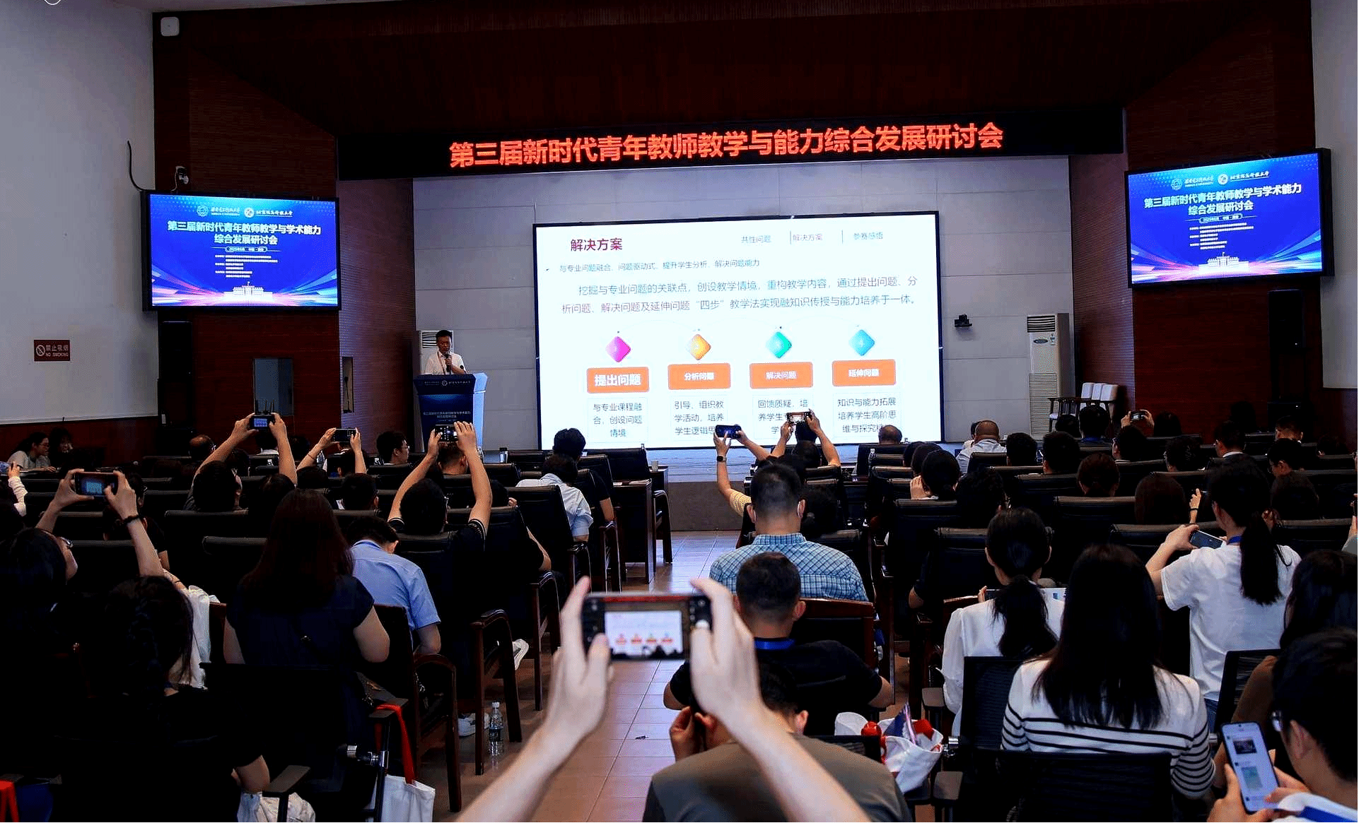 此次研討會電智學院高度重視、多方協調、全力支持,王進軍副教授認真準備。作為第五屆、第六屆全全國高等學校電子信息類專業(yè)青年教師授課競賽一等獎獲得者,他從教學內容選取、教學設計、教學組織與實施、現場呈現等方面在大會上分享了自己參賽感悟;同時結合授課競賽并從電子信息類專業(yè)物理基礎課程的共性特點、遇到的教學問題以及解決方案分享了自己對教學思考與實踐,引起了參會教師的共鳴。