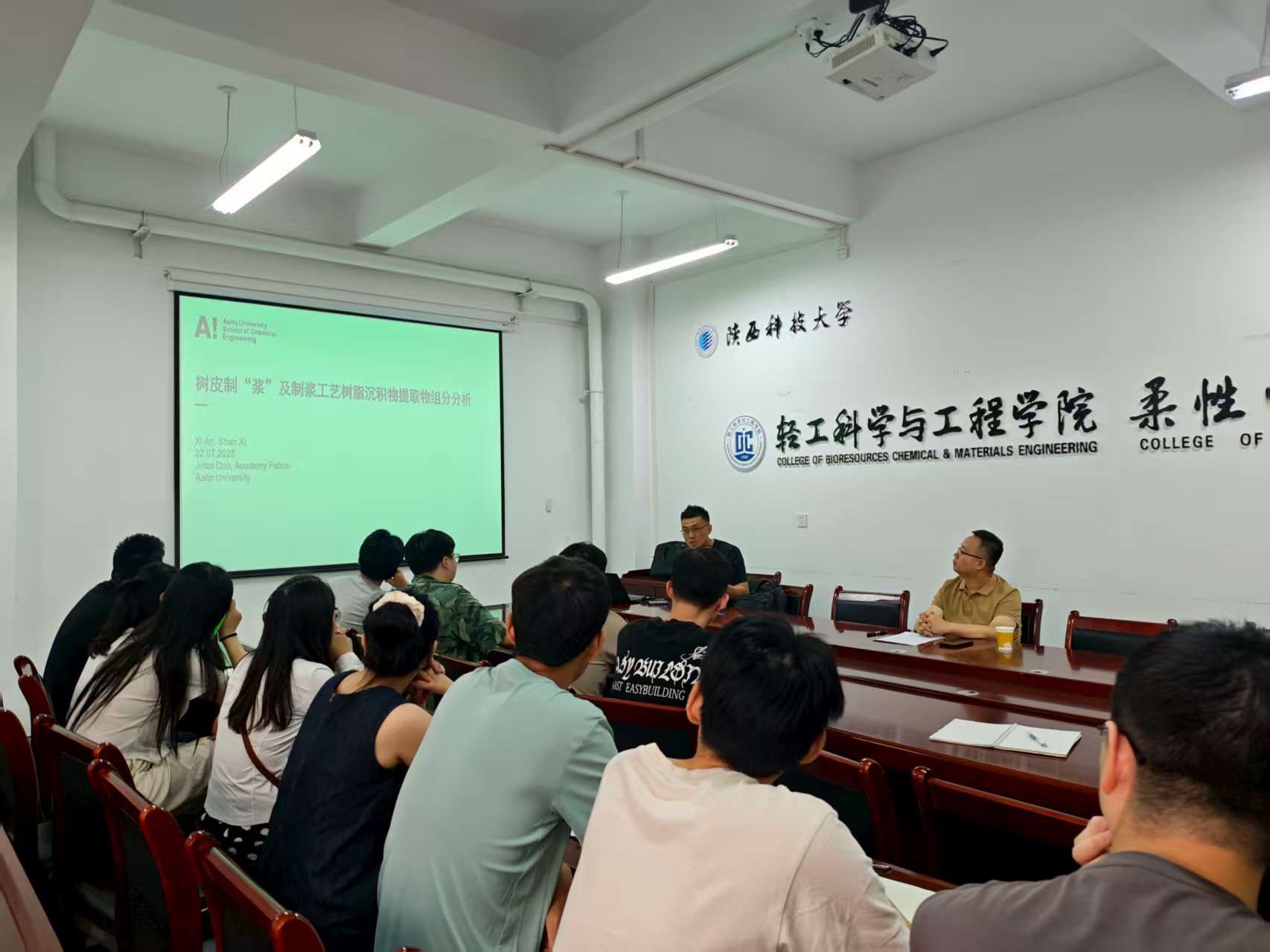 7月22日,應(yīng)學(xué)校輕工科學(xué)與工程學(xué)院(柔性電子學(xué)院)和研究生院邀請(qǐng),芬蘭阿爾托大學(xué)竇金澤研究員做客我?!拔囱雽?dǎo)師論壇”,作了題為“樹(shù)皮制‘漿’及制漿工藝樹(shù)脂沉積物提取物組分分析”的學(xué)術(shù)報(bào)告。報(bào)告會(huì)由輕工學(xué)院副院長(zhǎng)劉國(guó)棟主持,輕工學(xué)院相關(guān)專(zhuān)業(yè)教師和研究生參加了此次報(bào)告會(huì)。